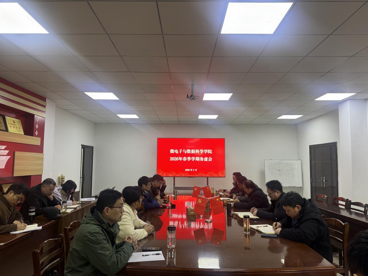在数理楼306会议室召开2026年春季学期务虚会议。学院领导班子成员、各系部主任及党支部书记参会,会议由院长杨二光主持。