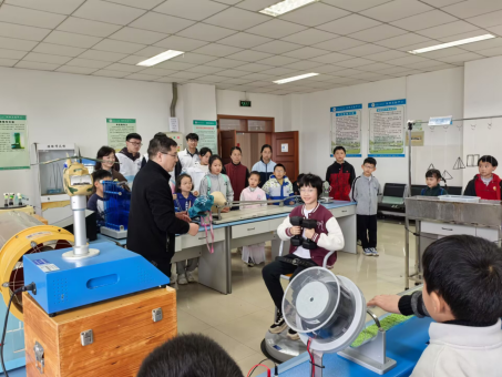发展历程与科普资源建设成果;随后,一场生动有趣的《生活中的科学小奥秘》趣味科普课,通过“为什么天空是蓝色的”“静电从何而来”等贴近生活的案例,点燃了孩子们的求知热情。最受期待的“科普基地实践”环节中,孩子们走进实验室,近距离观摩基础工科实验演示,亲手操作简单仪器,感受工科魅力。从光学现象到电路连接,每一个实验都引来阵阵惊叹,科学的种子在孩子们心中悄然萌发。