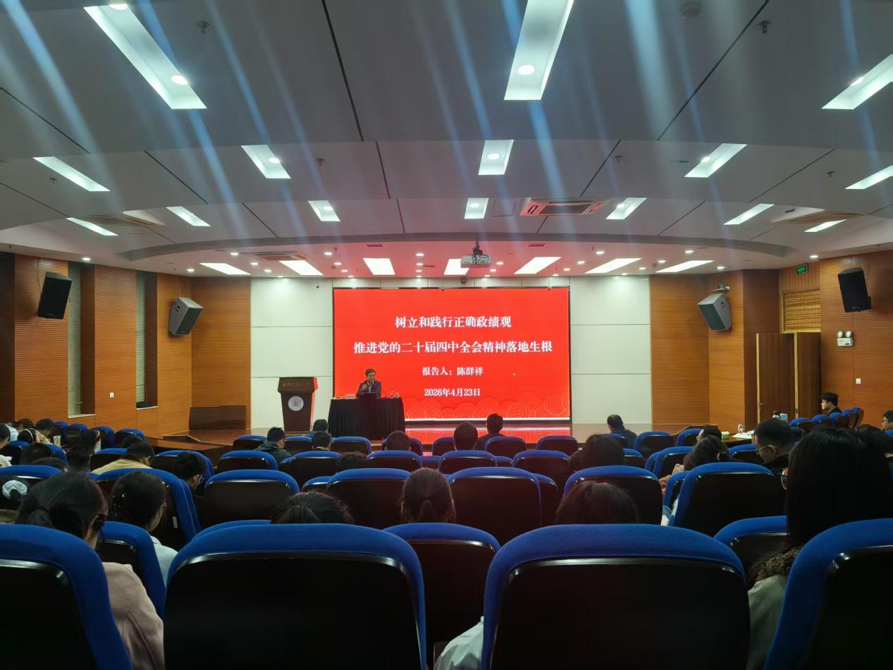 党委、建筑工程学院党委在振华图书馆学术报告厅第一报告厅联合举办专题辅导报告会。邀请马鞍山市委党校现代科技与管理教研室副主任、教研名师、市首批“宣讲名家”陈群祥副教授作“树立和践行正确政绩观 推进党的二十届四中全会精神落地生根”专题辅导报告。两个学院的教职工党员、科级干部以及学生党员代表参加了报告会。
