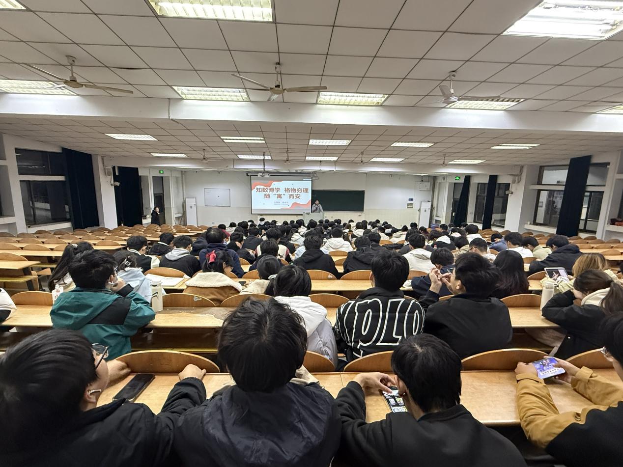 联合后勤处面向全体大一新生开展“送课进学院”宿舍安全卫生专题交流会。后勤处副处长涂必华、学院 2025 级辅导员周文潇及全体新生共同参与此次活动。